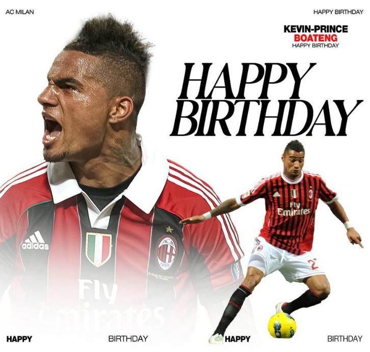 3月6日訊 今天是凱文-博阿滕38歲生日,AC米蘭官方也制作海報為這位球隊舊將送上生日祝福。凱文-博阿滕生涯最輝煌的時期在AC米蘭度過,他在共計為球隊出戰的114場比賽中,貢獻18粒進球和16次助攻,