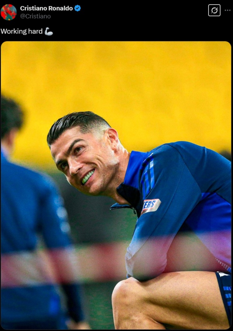 3月6日訊 C羅在個人社媒曬出一張自己在訓練場的照片,笑容洋溢看起來心情不錯。C羅正在隨利雅得勝利備戰沙特聯比賽,球隊下一場將在主場對陣利雅得青年人。