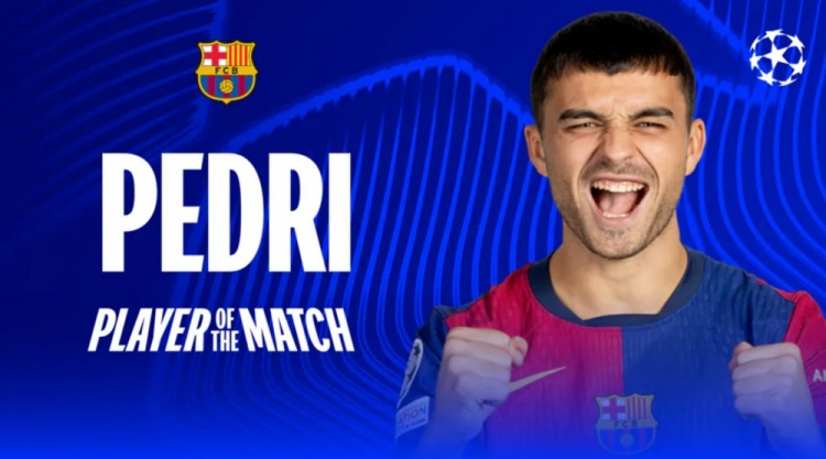 大師級發揮!歐冠官方:佩德里當選巴薩1-0本菲卡全場最佳球員