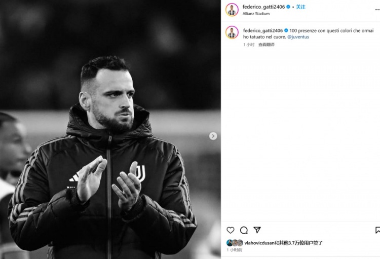 3月4日訊 意甲第27輪,尤文2-0維羅納,加蒂上演了尤文生涯100場里程碑。賽后加蒂更新了社媒。加蒂:“已經身披這件球衣出場了100次,我把這些顏色已經深深印刻在我的心中”。加蒂至今為尤文100次出