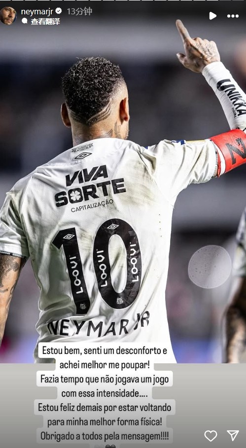 3月3日訊 巴圣錦標1/4決賽,內馬爾破門,桑托斯2-0巴甘蒂諾紅牛。內馬爾第76分鐘被換下,賽后他在場邊接受了治療。 目前,內馬爾更新社媒,談到了自己的情況。內馬爾表示道:“我沒事,只是覺得不舒服,