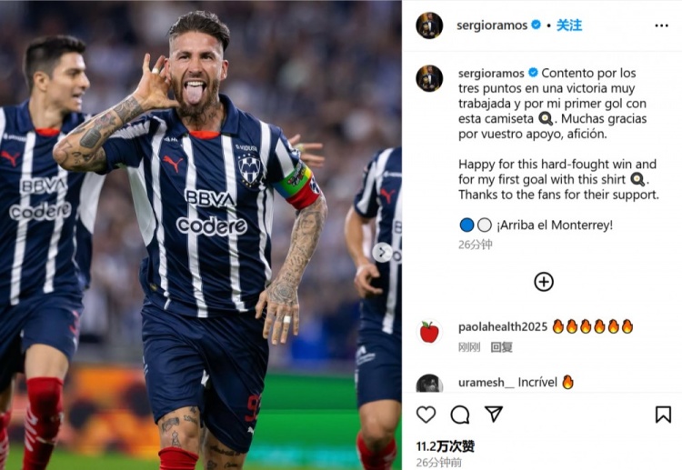 3月3日訊 拉莫斯更新社媒,慶祝自己打進加盟蒙特雷后的首粒進球。現年38歲的拉莫斯2月份加盟蒙特雷,在球隊本輪4-2擊敗桑托斯拉古納的墨甲聯賽中,拉莫斯頭球破門攻入個人蒙特雷生涯首球。賽后,拉莫斯更新