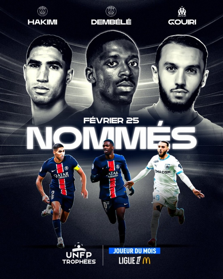 法甲2月最佳球員候選:登貝萊6球、阿什拉夫2球、古伊里2球3助