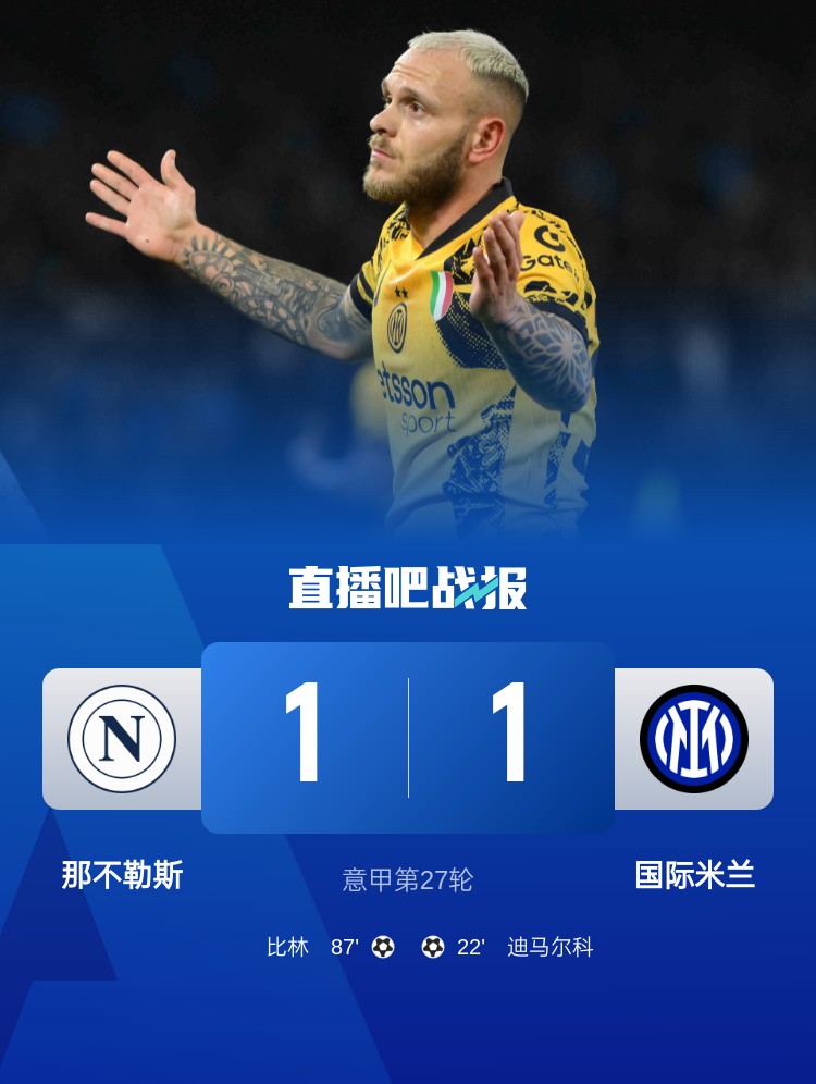 意甲積分榜:天王山之戰1-1收場,國米仍居榜首,那不勒斯第二