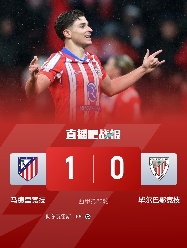 3月2日訊 在本輪西甲,馬競1-0小勝畢爾巴鄂競技,阿爾瓦雷斯打進制勝球。賽后阿爾瓦雷斯也當選官方評選出的本場最佳,球員也在個人社媒曬出本場慶祝進球照,配文寫道:“拿下重要的勝利!”