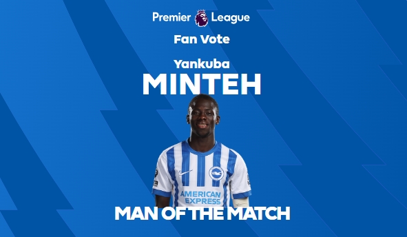 2月15日訊 英超第25輪比賽,布萊頓主場3-0完勝切爾西。此役出任邊衛(wèi)的明特為布萊頓打進2球,英超官方宣布,他當選本場比賽最佳球員。