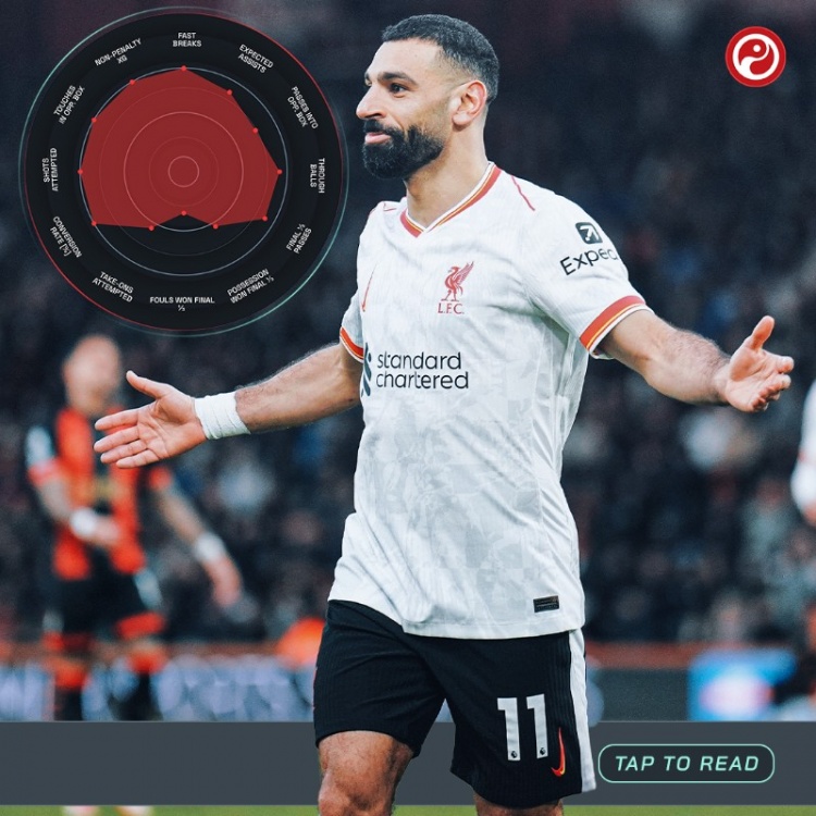 真不續(xù)?32歲薩拉赫本賽季英超24場22球14助,每59分鐘直接造1球