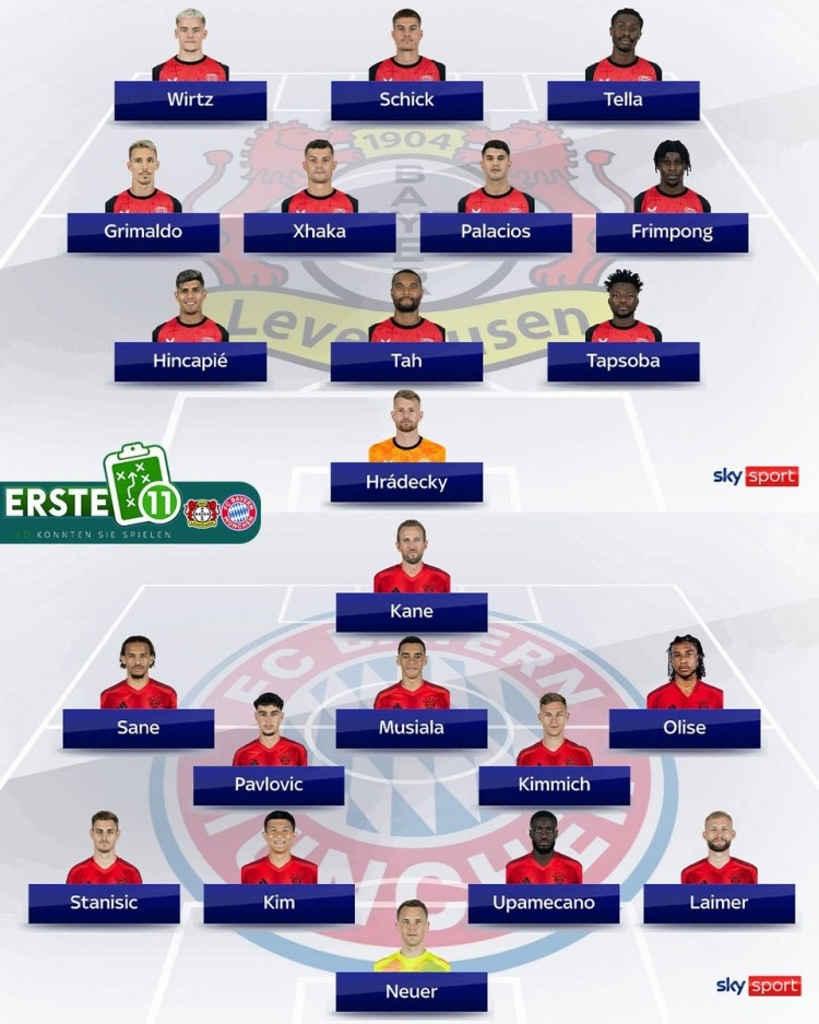 德天空預測藥廠vs拜仁首發(fā):凱恩PK希克,穆西亞拉、維爾茨在列