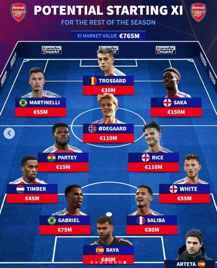 2月15日訊 哈弗茨在不久前已經(jīng)官宣賽季報銷,《轉(zhuǎn)會市場》也預測了阿森納下半程的首發(fā)陣容情況。德轉(zhuǎn)預測阿森納下半程首發(fā):總身價7.65億歐元前鋒:馬丁內(nèi)利(5500萬)、特羅薩德(3000萬)、薩卡(