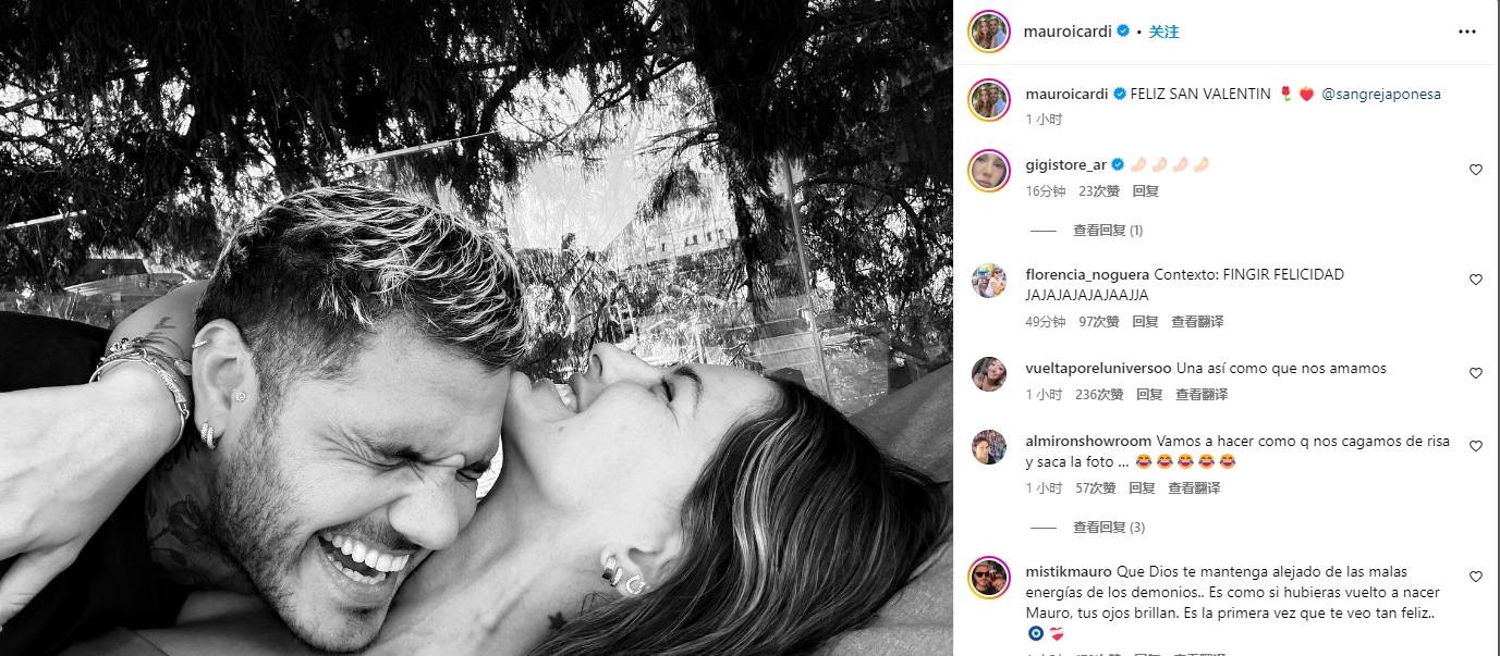 2月15日訊 伊卡爾迪更新社媒動態(tài),曬出與新女友的合照。情人節(jié)之際,伊卡爾迪在社交媒體上曬出與新女友尤金妮婭的親密合照,配文:“情人節(jié)快樂!”伊卡爾迪與旺達分手之后,很快與新女友尤金妮婭公開戀情,并頻