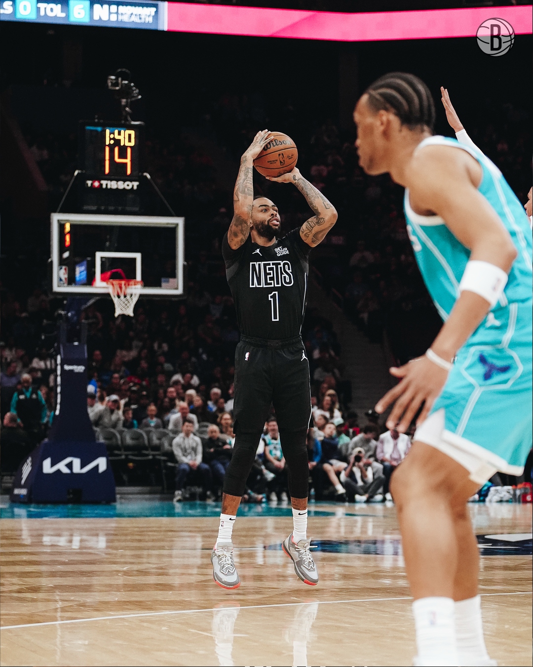 03月09日訊,在今日結束的NBA常規賽中,籃網隊客場102:105不敵黃蜂。此役,籃網隊球員丹吉洛-拉塞爾發揮出色,第三節手感火熱,個人連得15分。全場投籃18中10,三分球11中4,罰球6中4,得