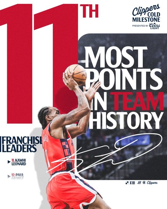 3月8日訊 NBA常規賽,快船半場60-54領先尼克斯。上半場萊昂納德出戰17分鐘,投籃7中3,三分球3中1,罰球2中2,拿到9分2籃板4助攻1搶斷的數據。根據數據統計,加上這9分,小卡的快船生涯總得