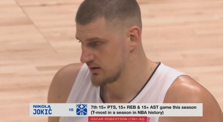 約基奇本季已經7次單場至少15分15板15助 追平大O的歷史紀錄