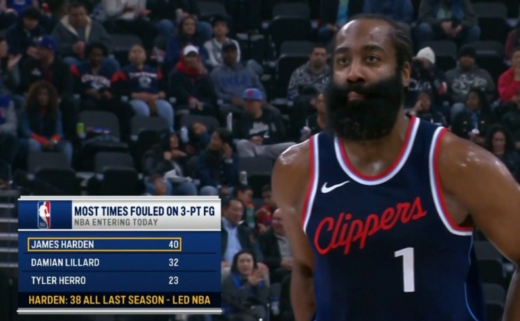 外線殺傷力十足!哈登本場(chǎng)之前40次三分被犯規(guī)領(lǐng)跑聯(lián)盟