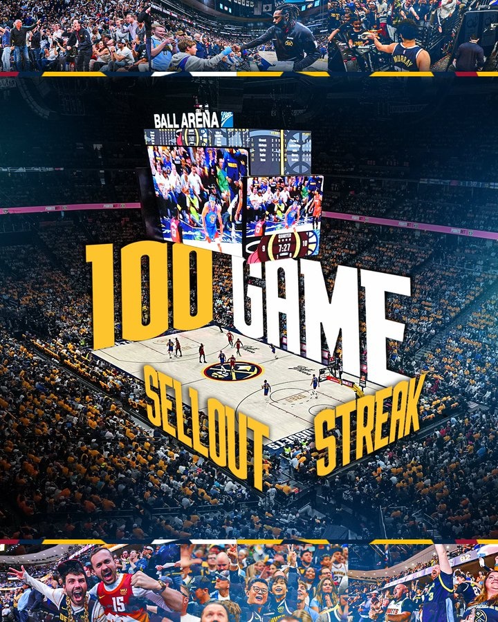 波爾球館連續(xù)100場(chǎng)比賽球票售罄 掘金官推感謝球迷