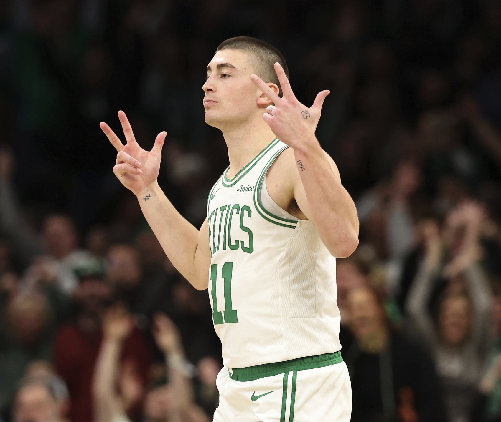 3月6日訊 今天結(jié)束一場(chǎng)的NBA常規(guī)賽,凱爾特人在主場(chǎng)128比118擊敗了開(kāi)拓者。賽后普理查德接受了媒體的采訪。被問(wèn)到第四節(jié)沒(méi)有強(qiáng)求一個(gè)三分以追平或者打破斯瑪特保持的隊(duì)史單場(chǎng)三分紀(jì)錄(11個(gè))時(shí),普理