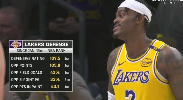 3月5日訊 NBA常規賽,湖人半場69-59領先鵜鶘。湖人球員海斯在第二節比賽6投全中,拿下15分5籃板。數據媒體StatMamba統計,這是湖人隊史自2004年的奧尼爾后,首次有中鋒單節砍下至少15