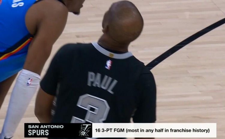 3月3日訊 NBA常規賽,馬刺上半場以77-72領先雷霆。上半場比賽,馬刺全隊三分26中16,16記三分創造了馬刺隊史任意半場三分命中數紀錄。