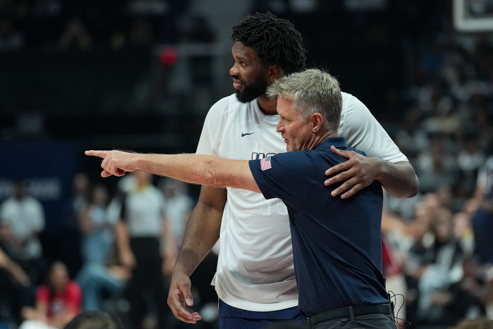 科爾美國男籃征戰奧運期間執教恩比德3月2日訊 今早9點半,勇士客場挑戰76人,科爾賽前接受了媒體采訪。談到恩比德因傷賽季報銷,科爾表示:“我為他和76人感到難過,我們的聯盟非常依賴數據和一些優秀的球員