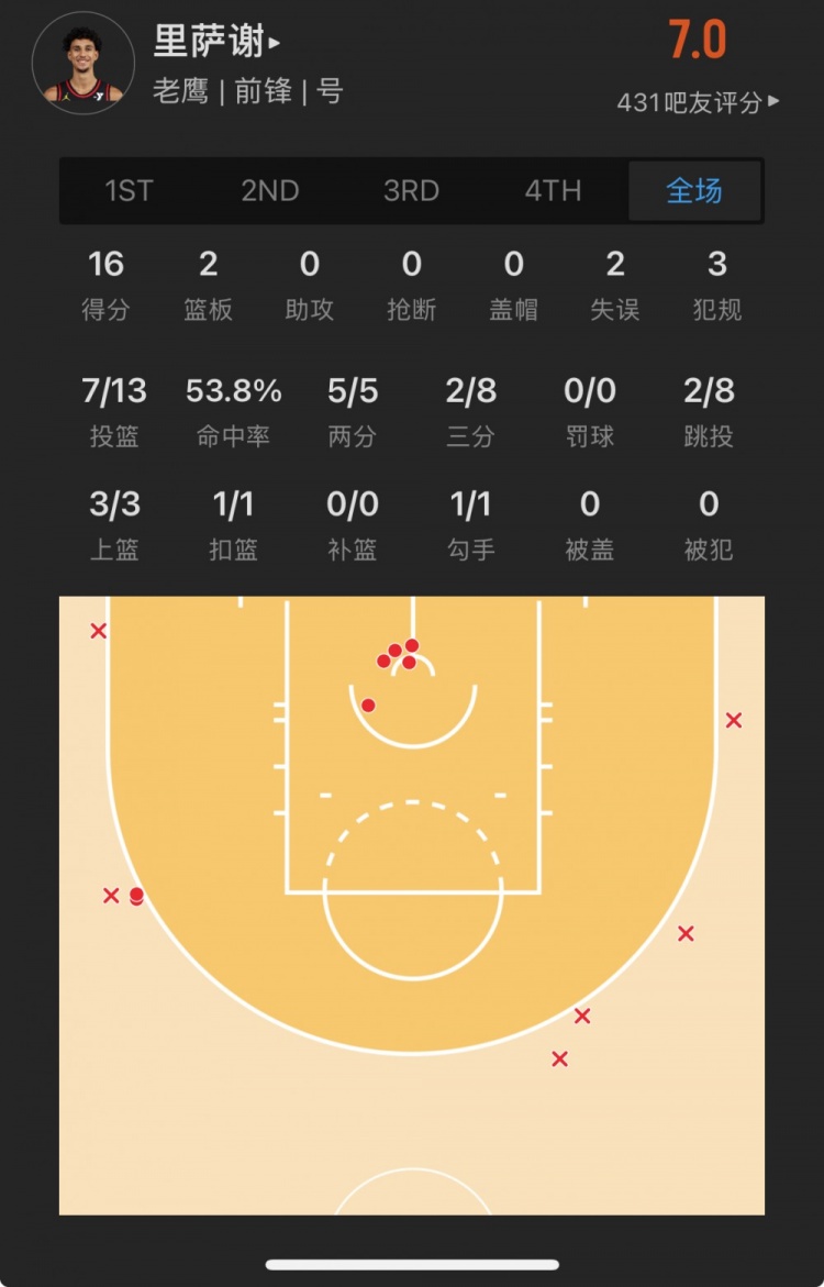 老鷹狀元秀 扎卡里-里薩謝 登場22.6分鐘