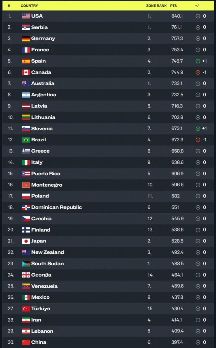 要說贏家的話,當屬2018年歐洲杯中表現出色的斯洛文尼亞、意大利、拉脫維亞等多支球隊了。新榜單開始正視歐洲籃球整體水平在世界籃壇的領先地位,前30名中光是來自歐洲的就有18家,比起舊版這無疑更符合主流的觀點印象。