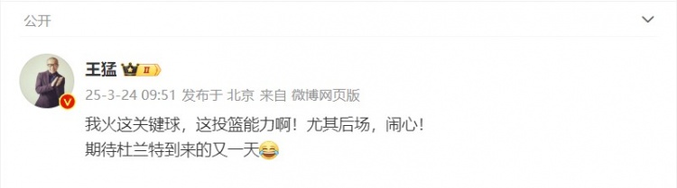 王猛在個人微博上寫道:“我火這關(guān)鍵球,這投籃能力??!尤其后場,鬧心!