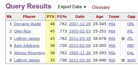 希羅成熱火隊史單場砍至少35分且命中率75%+最年輕球員 力壓詹韋