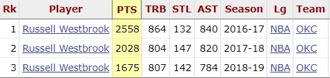 單賽季達成至少800籃板650助攻110搶斷的球員:約基奇、威少