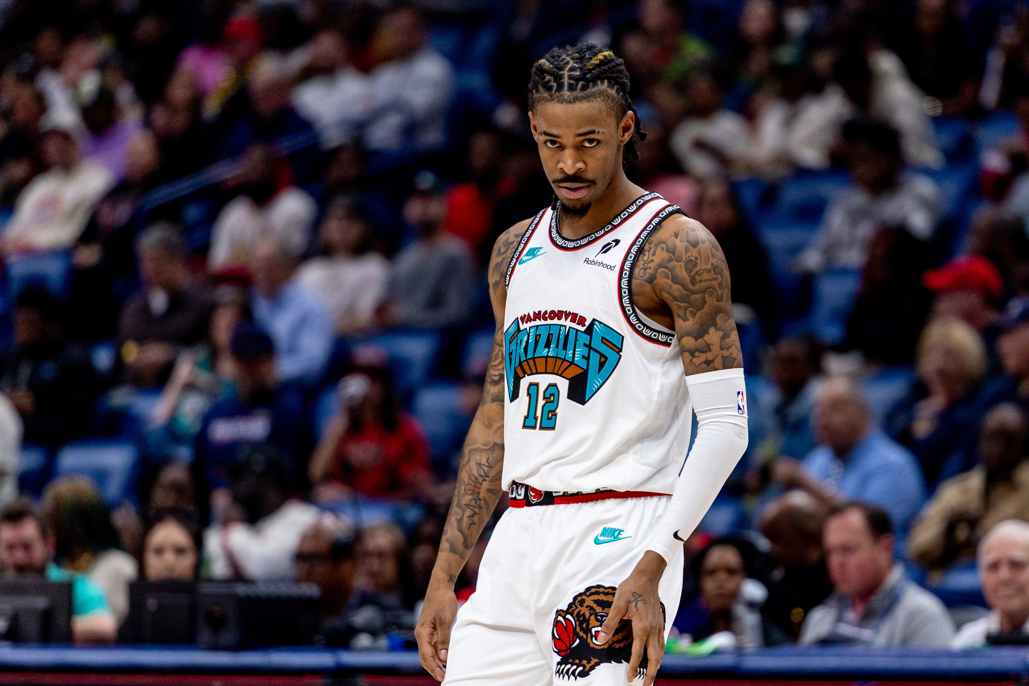 莫蘭特188公分、78公斤,本季至今場均三分球命中率29.1%。體型小防守天然受限,遠射不好被放空,這也決定了他在場時對防守和空間確實有負面影響,打法比較粘球,在他上半場陣地戰持球想要一個人硬解湖人四人收縮陣型的進攻回合堪稱是灰熊的災難。