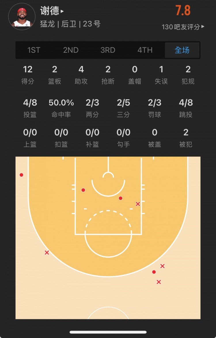 猛龍45號秀 賈馬爾-謝德 登場17.4分鐘