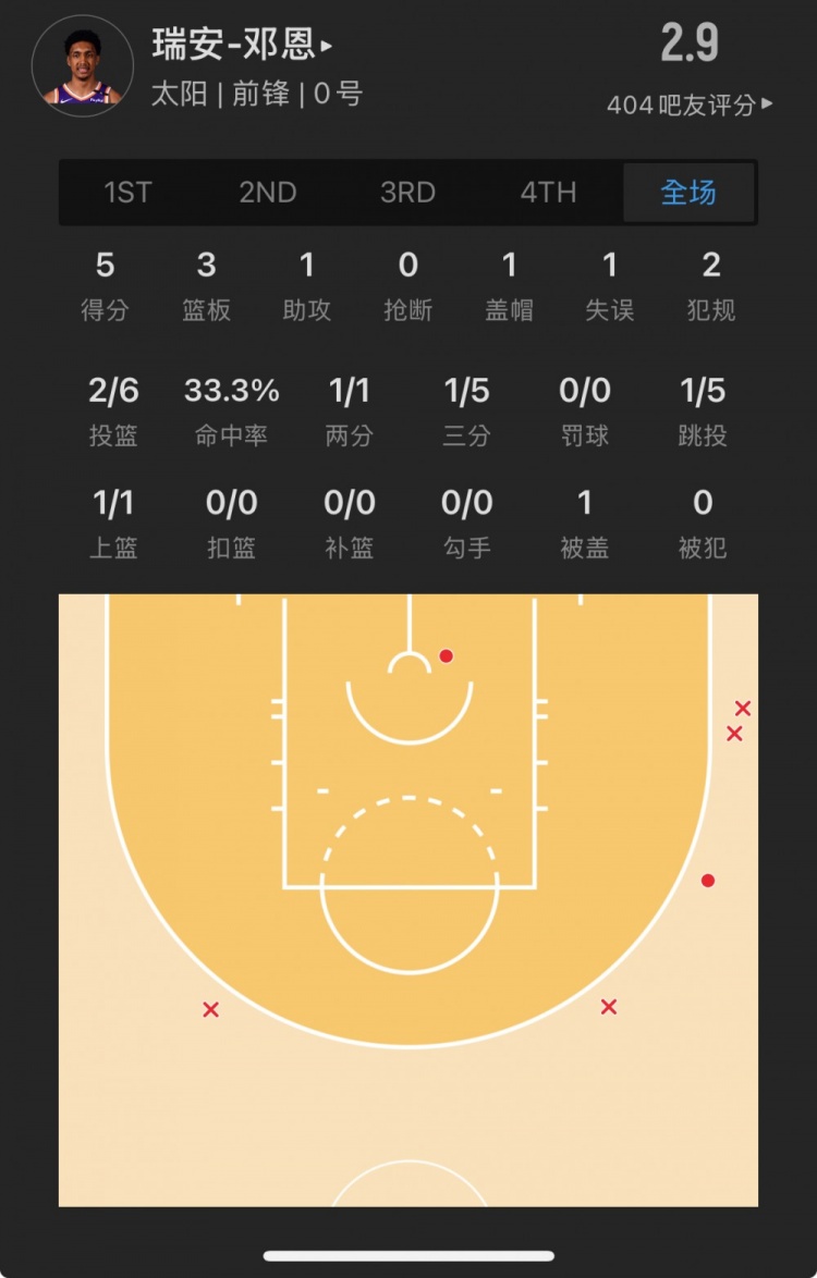 太陽28號秀 瑞安-鄧恩 登場10.8分鐘