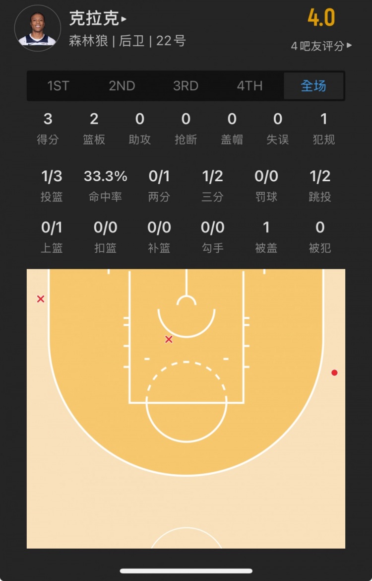森林狼23年53號秀 杰倫-克拉克 登場10.8分鐘