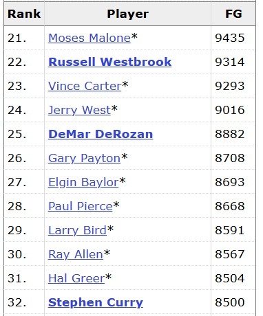 這樣一來,庫里生涯投籃命中數(shù)達(dá)到8505個,超越哈爾-格里爾升至歷史第31位!