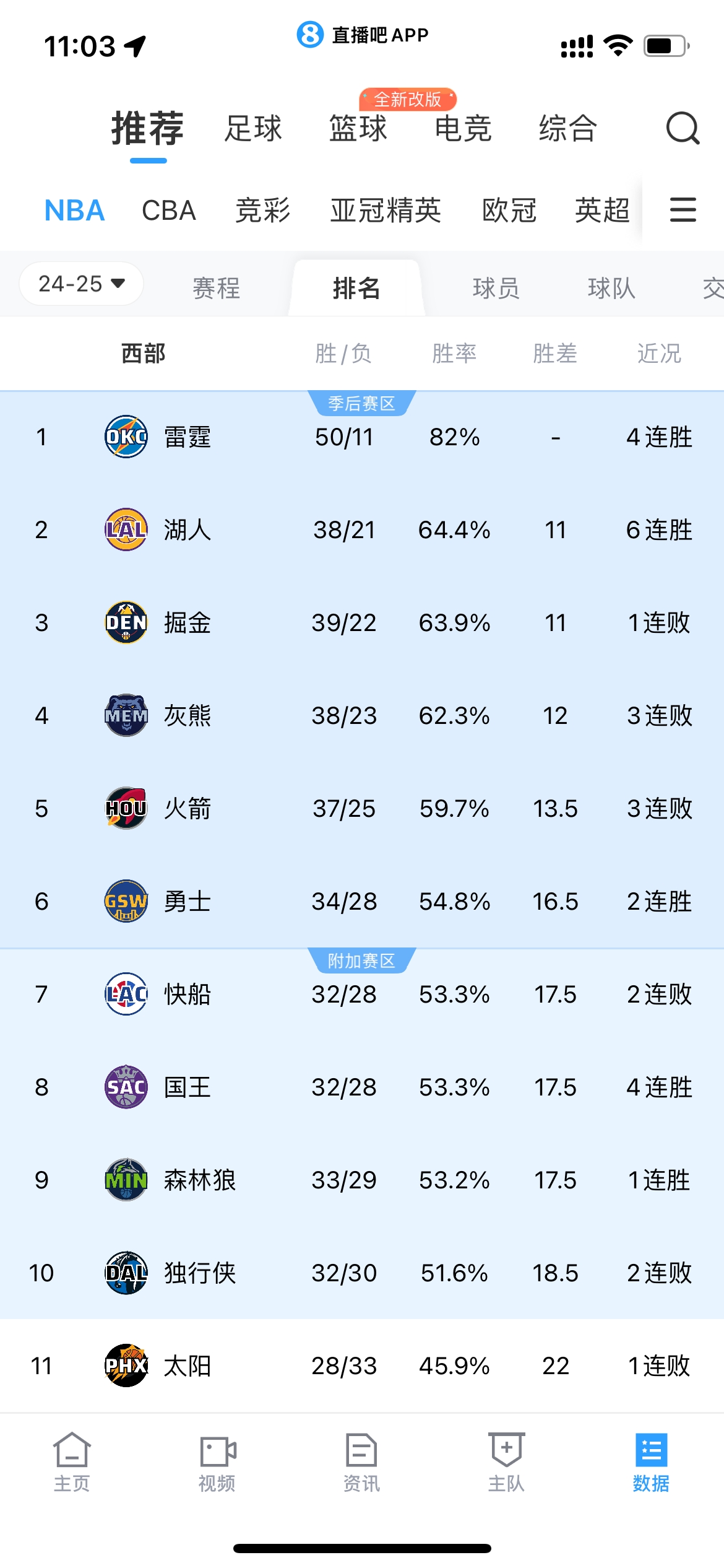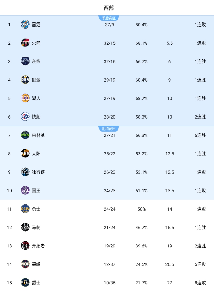 值得一提的是,今年2月1日時(shí),勇士?jī)H排名西部第11。