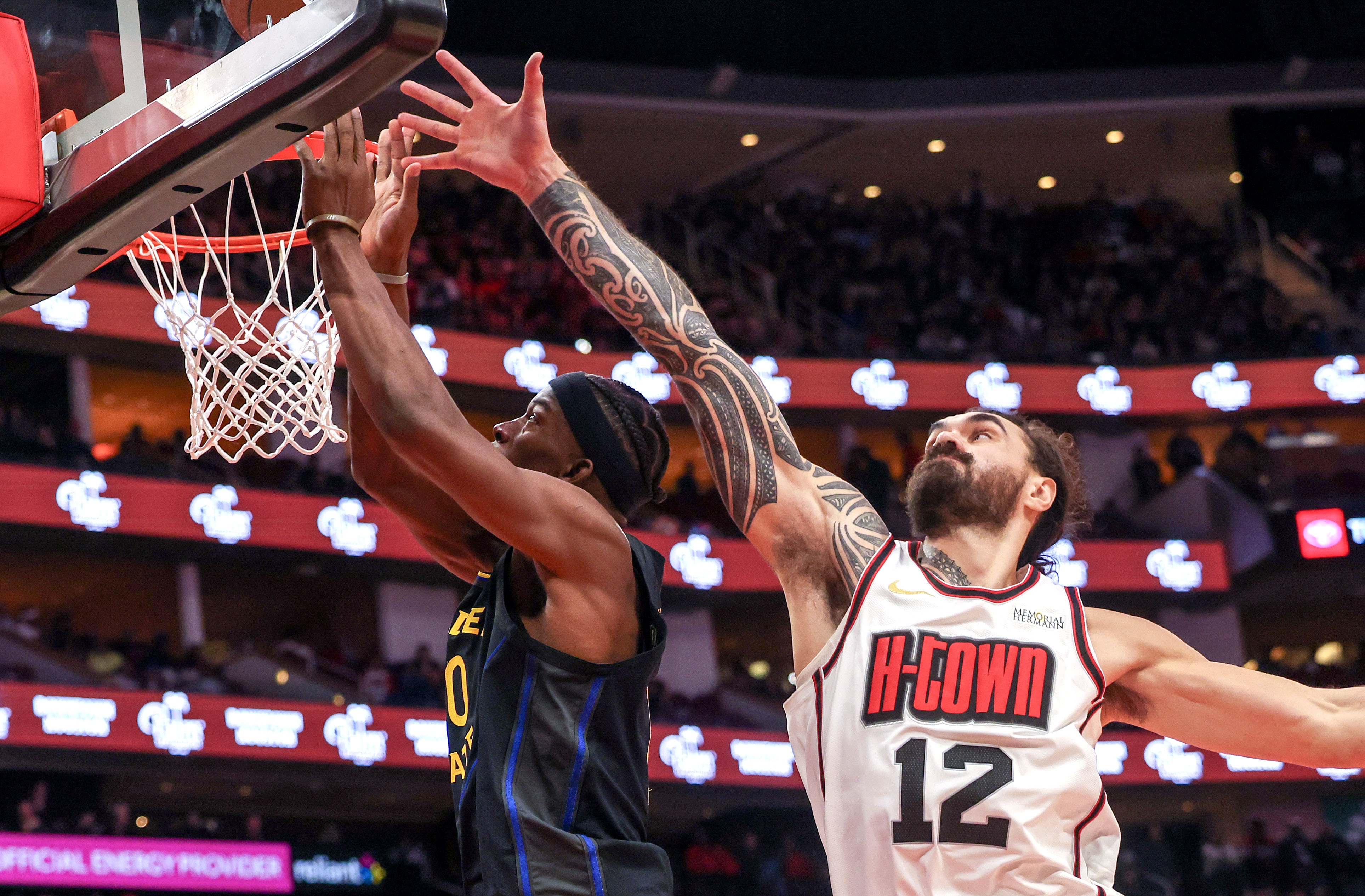 這就是勇士隊在12月中旬交易來丹尼斯-施羅德的初衷:試圖為已經淪為聯盟倒數三分之一的進攻注入新的活力,并在一系列嘗試中做出新的努力,以止住在庫里離場時的失血。但是,盡管勇士隊在交易后堅稱一名高位擋拆組織者將是對球隊的有益補充(在主教練史蒂夫-科爾的帶領下,球隊有時會固執地避免過度依賴籃球中最流行的戰術),但施羅德并沒有融入球隊,他場均可以得到10.6分,三項投籃命中率分別為38%、32%和74%。根據Cleaning the Glass的數據,當施羅德在場上時,勇士隊在每100個非垃圾時間的進攻回合中凈負9.9分,當他在庫里休息時主導進攻時,球隊的得分水平仍然處于墊底。