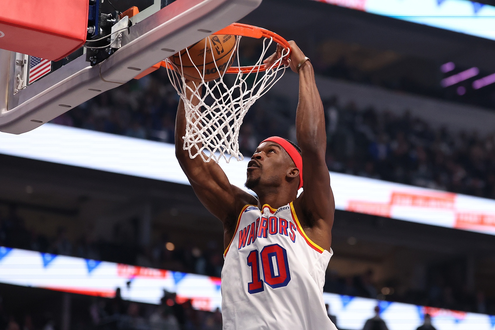 巴特勒并沒有用超級巨星的表現壓倒對手,在勇士隊他場均可以得到還算不錯的16.3分、5.3個籃板、5.3次助攻和1.1次搶斷,上場時間為30.6分鐘。(我說“還算不錯”是因為本賽季只有13名其他球員達到這些數據,除了德斯蒙德-貝恩,其他人都至少入選過一次全明星。)巴特勒在投籃方面的表現很掙扎——自從交易以來,他20次三分球出手投丟了18個,在油漆區的投籃命中率僅為53.3%,低于本賽季早些時候在邁阿密熱火隊時的61.2%——而且在過去的幾場比賽中有所下滑,部分原因是背部痙攣,部分原因是整體進攻停滯。