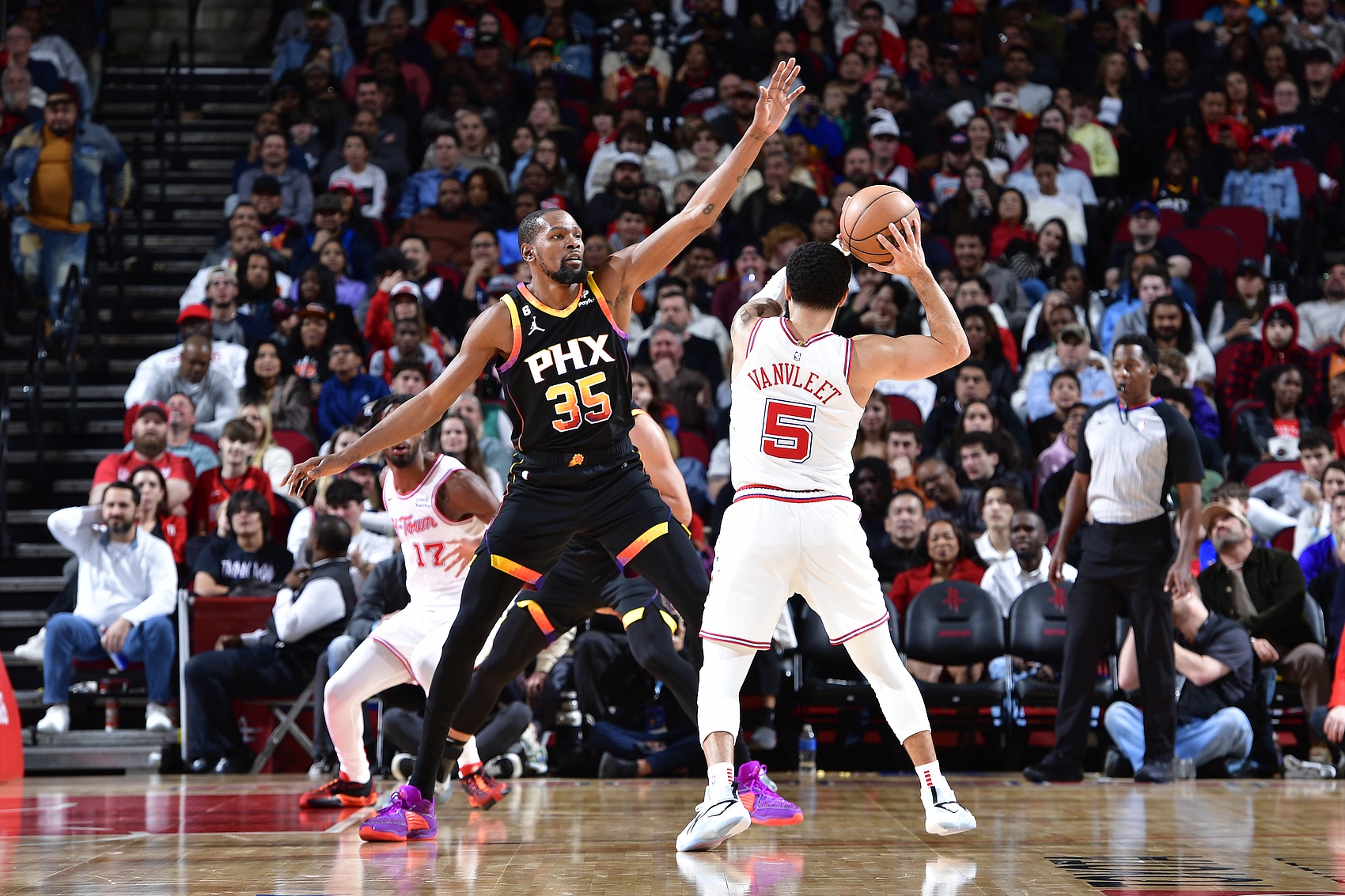 火箭是太陽完美的交易伙伴,主要有兩個原因。首先,杜蘭特完美填補了火箭最大的短板。憑借年輕的核心陣容和強悍的防守,火箭正在西部崛起。但他們缺乏一位能夠帶領球隊爭冠的頂級得分手,根據Cleaning the Glass網站的數據,本賽季火箭的半場進攻效率僅排名聯盟第25位。即使已經36歲,杜蘭特也能在這一領域帶來顯著提升,他的使用率和真實命中率都遠高于火箭輪換陣容中的任何一名球員。其次,火箭控制著太陽2025年、2027年和2029年的首輪簽,這些首輪簽最初是太陽在交易杜蘭特時送給籃網的。重新獲得部分或全部首輪簽將使太陽能為杜蘭特時代畫上圓滿句號,同時也讓球隊能夠在未來自由操作,而不必擔心失去樂透簽的風險。