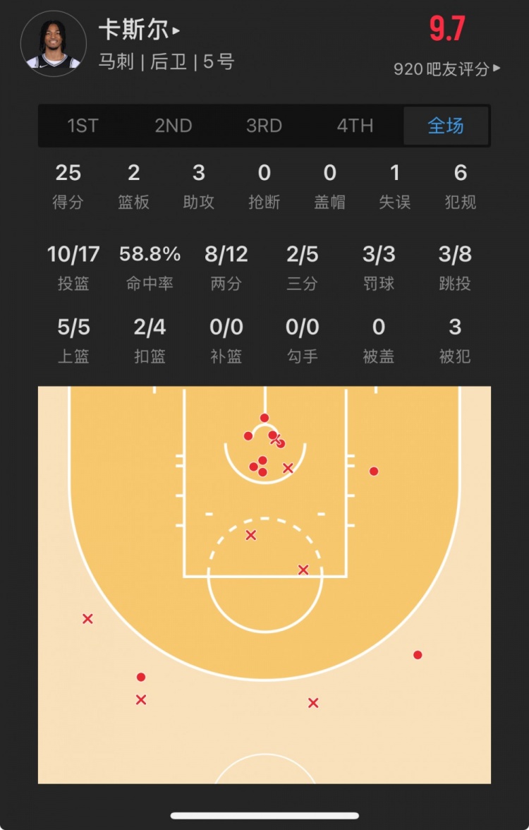 馬刺4號秀 斯蒂芬-卡斯爾 登場26.4分鐘