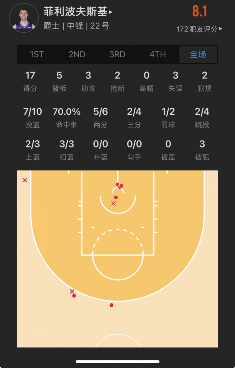 爵士32號秀 凱爾-菲利波夫斯基 登場27.3分鐘