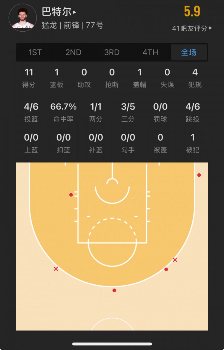 灰熊39號秀 杰倫-韋爾斯 登場21.0分鐘