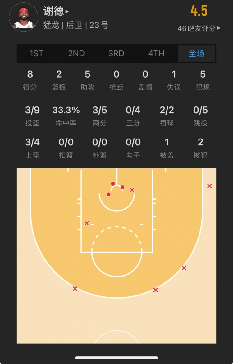 猛龍45號秀 賈馬爾-謝德 登場26.0分鐘