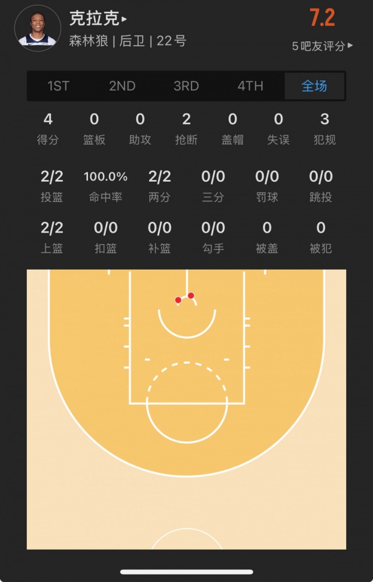 森林狼23年53號秀 杰倫-克拉克 登場11.6分鐘