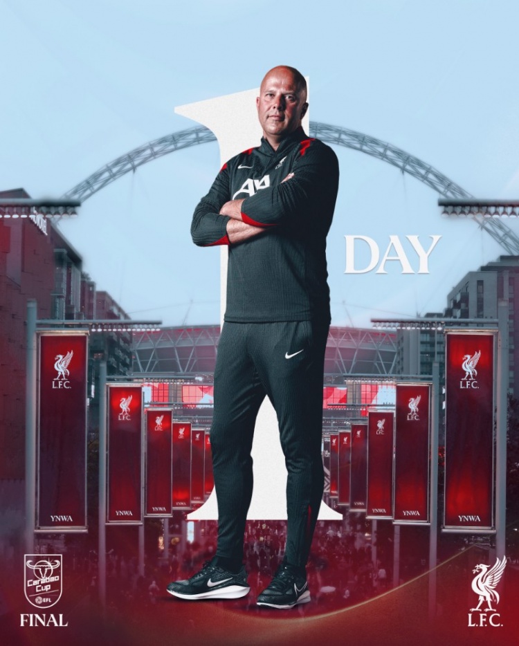 利物浦曬海報預(yù)熱聯(lián)賽杯決賽,斯洛特單人出鏡?