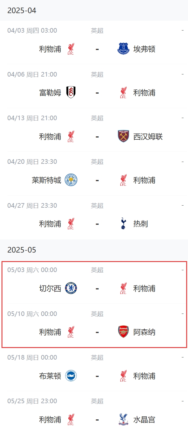 BBC分析指出,如果兩隊保持住目前的分差,那么利物浦只要在倒數第4輪,也就是第35輪客場擊敗切爾西,就可以提前3輪鎖定英超冠軍。
