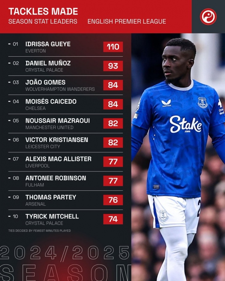 3月18日訊 國家隊比賽周到來,英超也暫時告一段落,squakwa統(tǒng)計了本賽季英超成功搶斷情況,蓋耶獨自領跑。