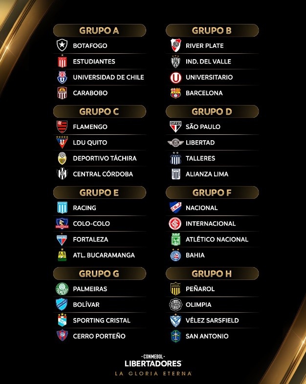 南美解放者杯分組:博塔弗戈、大學生同組,河床、巴塞羅那SC同組?