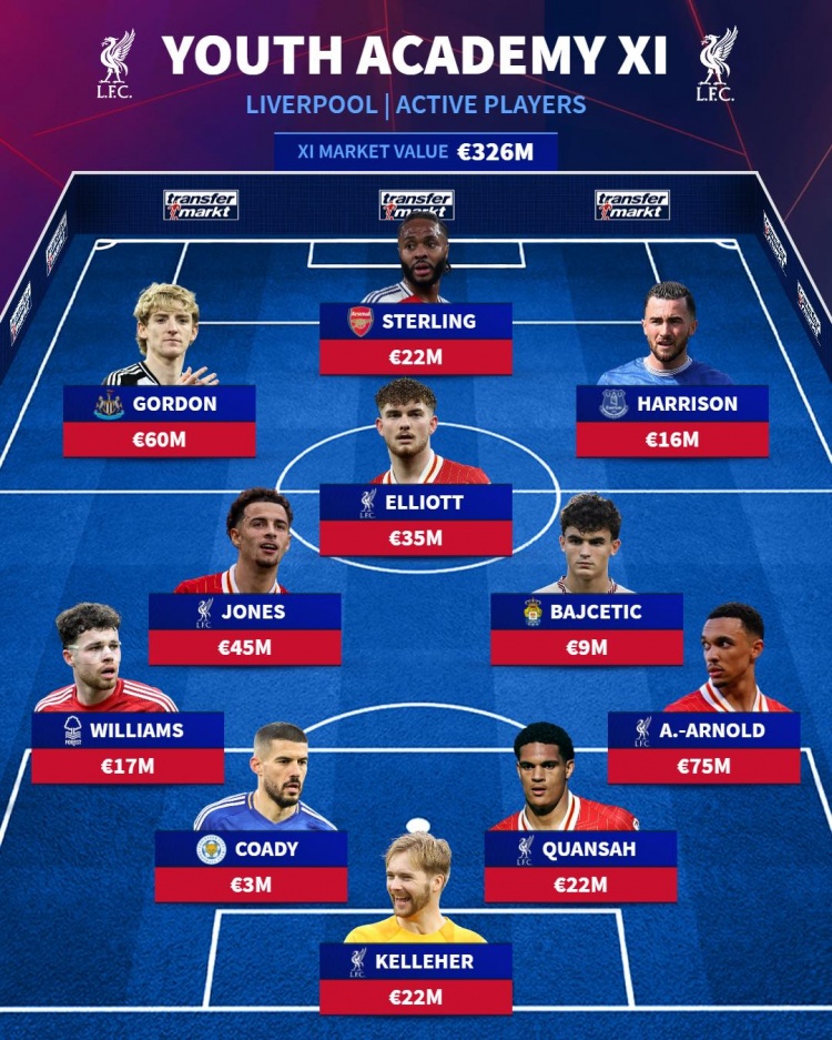 利物浦青訓出品球員最佳陣↓(括號內為球員目前效力球隊)