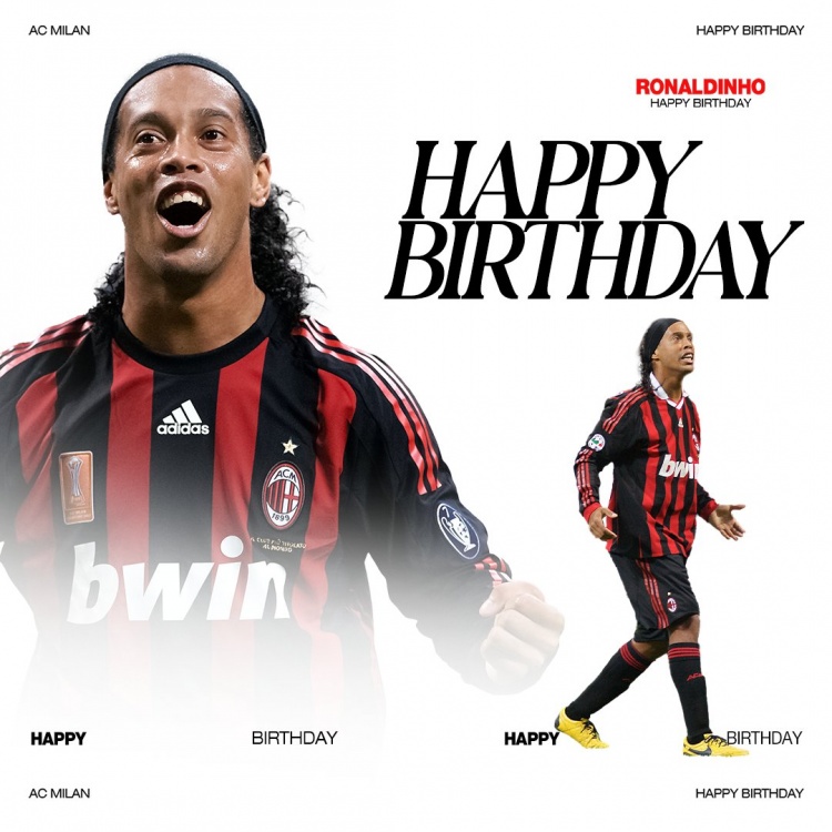 米蘭官方社媒曬出為羅納爾迪尼奧制作的生日海報,配文:“派對繼續!祝你度過愉快的一天,羅納爾迪尼奧!”