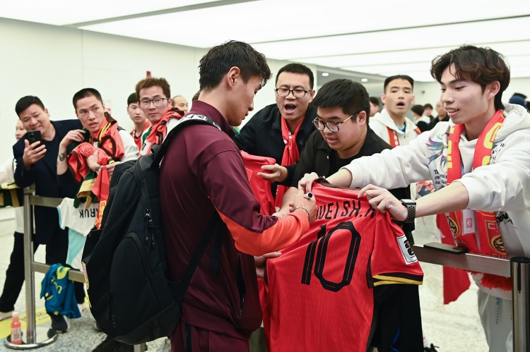 國足于北京時間21日18點40分抵達杭州,機場有眾多球迷前來接機,國足眾將們也滿足了一些球迷簽名和合影的請求。