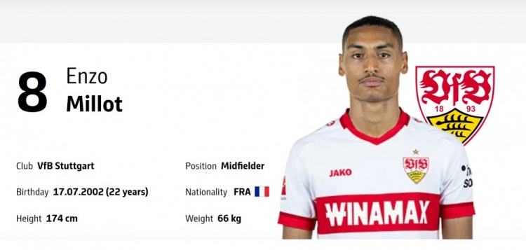 3月21日訊 《圖片報》 報道,22歲斯圖加特中場恩佐-米洛獲得多家球隊關注,包括利雅得勝利、熱刺和阿森納。